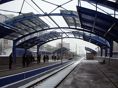Zhulia Verna (Ukrainian: Жуля Верна; until 2023, Romena Rollana) is a station on the Kyiv Light Rail. It was opened in 1977.