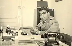 Ben Ali joined the local resistance against French colonial forces and was imprisoned.[11] His expulsion from secondary school was the reason why he never completed his secondary education.[11] He studied at the Sousse Technical Institute but failed to earn a professional certificate[12] and joined the newly formed Tunisian Army in 1958.[13] Nevertheless, after being chosen as one among a group of young officers,[10] he was awarded training in France at the École Spéciale Militaire de Saint-Cyr in Coëtquidan and the School of Applied Artillery in Châlons-sur-Marne, and also in the United States at the Senior Intelligence School in Maryland and the School for Anti-Aircraft Field Artillery in Texas. He also held a diploma in electronics engineering from a local university.[14] Returning to Tunisia in 1964, he began his professional military career the same year as a Tunisian staff officer.[13] During his time in military service, he established the Military Security Department and directed its operations for 10 years. He briefly served as military attaché in the Tunisian embassy of Morocco and Spain before being appointed General Director of National Security in 1977.[15][16]