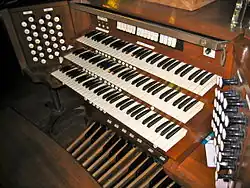 Zion’s first organ, a Bohler, was installed in 1889 at a cost of $2,325. Then in 1928, the Möller organ still serving the congregation today was installed for $10,500. The organ was built at the M.P. Moller Pipe Organ Company in Hagerstown. In 1963 the organ was rebuilt and 1,544 new pipes were added. Previous renovations included preparations in the console for further tonal enhancements. Improvements to the Möller organ are ongoing in an effort to keep the organ state-of-the-art. Zion's organ now has a total of 2,217 pipes, ranging in size from smaller than a pencil to 16 feet (4.9 m) long.[11]