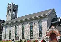 For Zion Church’s first 80 years, the services were in German. The change from the German to English left a portion of the congregation dissatisfied as there were some who did not understand English.[3] The choice was not only a language issue, it was also a social class issue, since the upper class businessmen and community leaders were exposed to English while conducting business, and the farmers, laborers and servants were confined to German which was used at home. The uneducated assimilated more slowly than the anglicized elements of the community.[7] In March, 1855, there was a meeting of those who preferred the German language. They organized, bought a lot, and laid the cornerstone of Christ's Reformed Church, completed and dedicated in 1856.[8] Within twenty years, the services at Christ’s Reformed Church were conducted in English.[2]