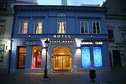 Zlaty Dukat is a building in the historical pedestrian zone in the heart of Kosice city, Slovakia. In the near surrounding of the building, there are situated the most significant memorials of the city. The history of the building reaches approximately back to the year 1240. It is assumed that basement walls were part of the first Royal house in Kosice city. Currently, there is a four star hotel Zlaty Dukat Zlaty Dukat in the building. Inside the building you can find a private collection of historical Slovak and Czech glassmakers from period of 17th-20th century, thereabouts 500 unique pieces of periods of early Baroque, Classicism, Rococo, Empire style, Biedermeier, Historicsm and Art Nouveau.