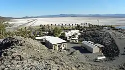 Zzyzx, showing Lake Tuendae (left) and the Desert Studies Center | |