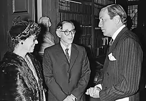 Klug was awarded the Louisa Gross Horwitz Prize from Columbia University in 1981. He was knighted by Elizabeth II in 1988.[11] In 1969 he was elected a Fellow of the Royal Society (FRS),[12] the oldest national scientific institution in the world. He was elected its President (PRS) from 1995 to 2000. He was appointed to the Order of Merit in 1995 – as is customary for Presidents of the Royal Society. His certificate of election to the Royal Society reads: