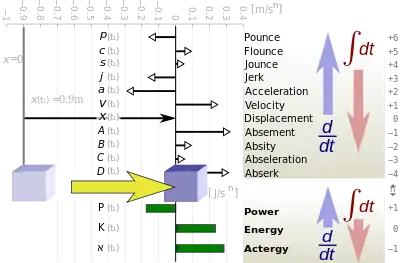 Integrals and derivatives of displacement, including absement, as well as integrals and derivatives of energy, including actergy. (Janzen et al. 2014)