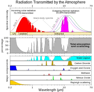 Vibrational transitions and optical phonon transitions take place in the infrared part of the spectrum, at wavelengths of around 1-30 micrometres.[5]