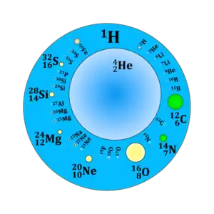 - Cameron, A. G. W. (1973). "Abundances of the elements in the solar system". Space Science Reviews. 15 (1): 121. Bibcode:1973SSRv...15..121C. doi:10.1007/BF00172440. S2CID 120201972.