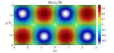 which corresponds a periodic array of counter-rotating vortices, as shown in the figure.