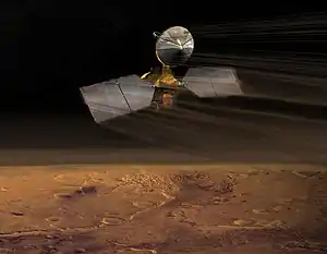 In 1997, the Mars Global Surveyor (MGS) orbiter was the first spacecraft to use aerobraking as the main planned technique of orbit adjustment. The MGS used the data gathered from the Magellan mission to Venus to plan its aerobraking technique. The spacecraft used its solar panels as "wings" to control its passage through the tenuous upper atmosphere of Mars and lower the apoapsis of its orbit over the course of many months. Unfortunately, a structural failure shortly after launch severely damaged one of the MGS's solar panels and necessitated a higher aerobraking altitude (and hence one third the force) than originally planned, significantly extending the time required to attain the desired orbit. More recently, aerobraking was used by the Mars Odyssey and Mars Reconnaissance Orbiter spacecraft, in both cases without incident.
