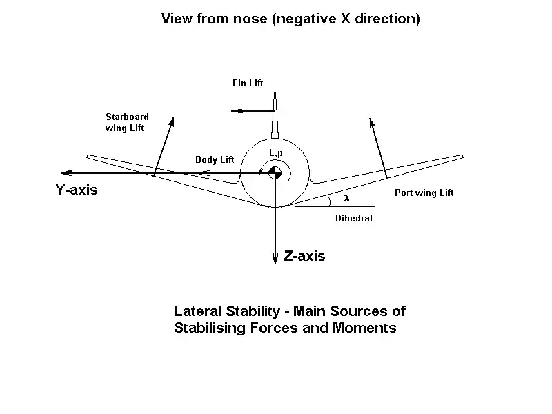 Considering the "stiffness" term: will be positive because is always negative and is positive by design. is usually negative, whilst is positive. Excessive dihedral can destabilize the Dutch roll, so configurations with highly swept wings require anhedral to offset the wing sweep contribution to .