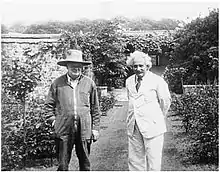 In March and April 1925, Einstein and his wife visited South America, where they spent about a week in Brazil, a week in Uruguay and a month in Argentina.[118] Their tour was suggested by Jorge Duclout (1856–1927) and Mauricio Nirenstein (1877–1935)[119] with the support of several Argentine scholars, including Julio Rey Pastor, Jakob Laub, and Leopoldo Lugones. and was financed primarily by the Council of the University of Buenos Aires and the Asociación Hebraica Argentina (Argentine Hebraic Association) with a smaller contribution from the Argentine-Germanic Cultural Institution.[120]