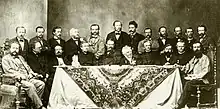 ![]() Faculty of Brno Technical College in 1864, seated sixth from left is Alexander Zawadzki and ninth is Gregor Mendel | |