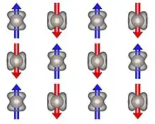 In condensed matter physics, altermagnetism is a type of persistent magnetic state in ideal crystals.[1][2][3][4][5] Altermagnetic structures are collinear and crystal-symmetry compensated, resulting in zero net magnetisation.[1][5][6][7] Unlike in an ordinary collinear antiferromagnet, another magnetic state with zero net magnetization, the electronic bands in an altermagnet are not Kramers degenerate, but instead depend on the wavevector in a spin-dependent way.[1] Related to this feature, key experimental observations were published in 2024.[8][9] It has been speculated that altermagnetism may have applications in the field of spintronics.[6][10]