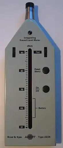 Ambient noise level is measured with a sound level meter.[4] It is usually measured in dB relative to a reference pressure of 0.00002 Pa, i.e., 20 μPa (micropascals) in SI units.[5] This is because 20 μPa is the faintest sound the human ear can detect.[5] A pascal is a newton per square meter. The centimeter-gram-second system of units, the reference sound pressure for measuring ambient noise level is 0.0002 dyn/cm2, or 0.00002 N/m2.[6] Most frequently ambient noise levels are measured using a frequency weighting filter, the most common being the A-weighting scale, such that resulting measurements are denoted dB(A), or decibels on the A-weighting scale.[4]