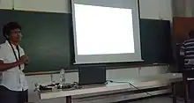 ![]() Font lecturing in the Guillermo Ruggeri Seminars Room at School of Physics in the Central University of Venezuela on 12 April 2016 | |