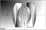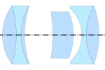 - Asymmetric Zeiss Biotar double Gauss lens design by Willy Merté (1927), with six elements in four groups.
