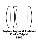 The Cooke Triplet was developed by H. Dennis Taylor for T. Cooke & Sons in York and patented in 1893. Cooke was not interested in manufacturing the lens, so a smaller workshop in Leicester, Taylor, Taylor and Hobson (no relation), was contracted to build the lens, bearing the Cooke brand.[3]: 103–106 Its relatively simple three-element, three-group construction gave it a cost advantage over prior designs.[1]: 67(§105)