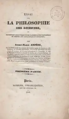 - André-Marie Ampère (1834), Essai sur la philosophie des sciences, ou, Exposition analytique d'une classification naturelle de toutes les connaissances humaines (in German), Chez Bachelier, retrieved 26 September 2010