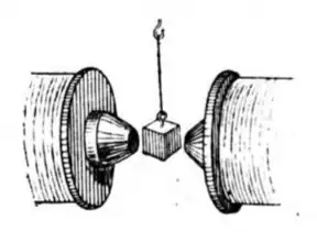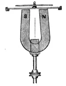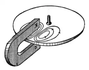 Guthrie and Boys in 1879[13][14][15] hung a copper plate over a rotating magnet by means of a torsion thread, and found that the torsion was directly proportional to the velocity of rotation. They pointed out that such an instrument was a very exact one for measuring the speed of machinery. They also made experiments upon varying the distance between the copper plate and the magnet, and varying the diameter and thickness of the copper disk.