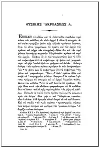 A page from an 1837 edition of the ancient Greek philosopher Aristotle's Physica, a book addressing a variety of subjects including the philosophy of nature and topics now part of its modern-day namesake: physics.