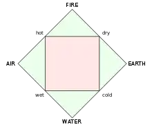 a ^ Here, the term "Earth" does not refer to planet Earth, known by modern science to be composed of a large number of chemical elements. Modern chemical elements are not conceptually similar to Aristotle's elements; the term "air", for instance, does not refer to breathable air.