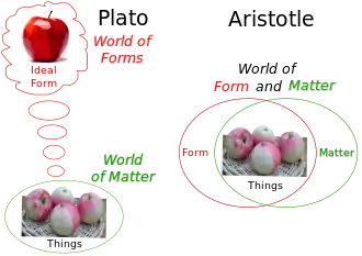 Aristotle's immanent realism means his epistemology is based on the study of things that exist or happen in the world, and rises to knowledge of the universal, whereas for Plato epistemology begins with knowledge of universal Forms (or ideas) and descends to knowledge of particular imitations of these.[31] Aristotle uses induction from examples alongside deduction, whereas Plato relies on deduction from a priori principles.[31]