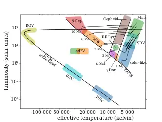 If the base of a surface convection zone is sharp and the convective timescales slower than the pulsation timescales, the convective flows react too slowly to perturbations that can build up into large, coherent pulsations. This mechanism is known as convective blocking[4] and is believed to drive pulsations in the Doradus variables.[5]