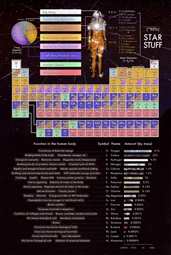 In October 2011, scientists reported that cosmic dust contains organic matter ("amorphous organic solids with a mixed aromatic-aliphatic structure") that could be created naturally, and rapidly, by stars.[28][29][30]