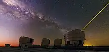 A description of the nature of the wavefront perturbations introduced by the atmosphere is provided by the Kolmogorov model developed by Tatarski,[2] based partly on the studies of turbulence by the Russian mathematician Andrey Kolmogorov.[3][4] This model is supported by a variety of experimental measurements[5] and is widely used in simulations of astronomical imaging. The model assumes that the wavefront perturbations are brought about by variations in the refractive index of the atmosphere. These refractive index variations lead directly to phase fluctuations described by , but any amplitude fluctuations are only brought about as a second-order effect while the perturbed wavefronts propagate from the perturbing atmospheric layer to the telescope. For all reasonable models of the Earth's atmosphere at optical and infrared wavelengths the instantaneous imaging performance is dominated by the phase fluctuations . The amplitude fluctuations described by have negligible effect on the structure of the images seen in the focus of a large telescope.