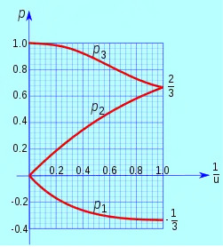 with roots p2 = 0 (obvious) and p2 = (1 + u) / (1 + u + u2), from which p1 and p3 are then obtained by back substitution. One can define six such parameters uab = pa / pb, for which pc ≤ pb ≤ pa when (c, b, a) is a cyclic permutation of (1, 2, 3).[36]