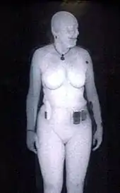 It is "possible for backscatter X-raying to produce photo-quality images of what's going on beneath our clothes", thus, many software implementations of the scan have been designed to distort private areas.[15] According to the TSA, further distortion is used in the Phoenix airport's trial system where photo-quality images are replaced by chalk outlines.[16][17] In light of this, some journalists have expressed concern that this blurring may allow people to carry weapons or certain explosives aboard by attaching the object or substance to their genitals.[15][18]