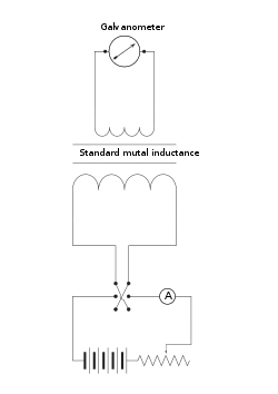Grassot fluxmeter calibration arrangement using a standard mutual inductor and a known quantity of electrical discharge. Measuring setup is similar.