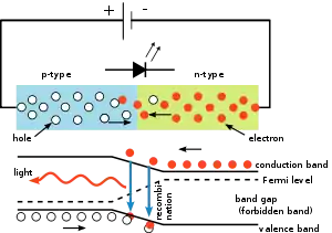 In solid-state physics of semiconductors, a band diagram is a diagram plotting various key electron energy levels (Fermi level and nearby energy band edges) as a function of some spatial dimension, which is often denoted x.[1] These diagrams help to explain the operation of many kinds of semiconductor devices and to visualize how bands change with position (band bending). The bands may be coloured to distinguish level filling.