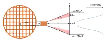 Another fundamental method for measuring emittance is by using a predefined mask to imprint a pattern on the beam and sample the remaining beam at a screen downstream. Two such masks are pepper pots[8] and TEM grids.[9] A schematic of the TEM grid measurement is shown below.