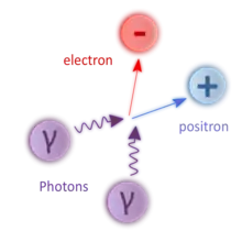 The inverse process, e+ e → γ γ′, in which an electron and a positron collide and annihilate to generate a pair of gamma photons, is known as electron–positron annihilation or the Dirac process[3] for the name of the physicist who first described it theoretically and anticipated the Breit–Wheeler process.