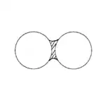 Starting from the assumption that two wetted surfaces will stick together, e.g. the bottom of a glass cup on a wet counter top, will help to explain the idea of how capillary condensation causes two surfaces to bridge together. When looking at the Kelvin equation, where relative humidity comes into play, condensation that occurs below Psat will cause adhesion.[2] However it is most often ignored that the adhesive force is dependent only on the particle radius (for wettable, spherical particles, at least) and therefore independent of the relative vapor pressure or humidity, within very wide limits.[2] This is a consequence of the fact that particle surfaces are not smooth on the molecular scale, therefore condensation only occurs about the scattered points of actual contacts between the two spheres.[2] Experimentally, however it is seen that capillary condensation plays a large role in bridging or adhering multiple surfaces or particles together. This can be important in the adhesion of dust and powders. It is important to note the difference between bridging and adhesion. While both are a consequence of capillary condensation, adhesion implies that the two particles or surfaces will not be able to separate without a large amount of force applied, or complete integration, as in sintering; bridging implies the formation of a meniscus that brings two surfaces or particles in contact with each other without direct integration or loss of individuality.