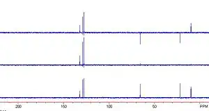 - Carbon NMR spectra, where there are three spectra of ethyl phthalate, ethyl ester of orthophthalic acid: completely coupled, completely decoupled and off-resonance decoupled (in this order).