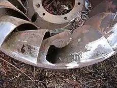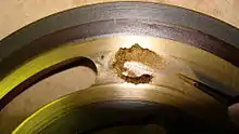 Although the collapse of a small cavity is a relatively low-energy event, highly localized collapses can erode metals, such as steel, over time.[38] The pitting caused by the collapse of cavities produces great wear on components and can dramatically shorten a propeller's or pump's lifetime.