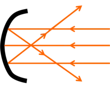 It can also be defined as the spherical distance between the point at which all the rays falling on a lens or mirror either seems to converge to (in the case of convex lenses and concave mirrors) or diverge from (in the case of concave lenses or convex mirrors) and the lens/mirror itself.[2]