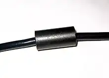 A modern form of choke used for eliminating digital RF noise from lines is the ferrite bead, a cylindrical or torus-shaped core of ferrite slipped over a wire. These are often seen on computer cables.