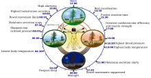 Biochronometry (also chronobiology or biological chronometry) is the study of biological behaviours and patterns seen in animals with factors based in time. It can be categorised into Circadian rhythms and Circannual cycles. Examples of these behaviours can be: the relation of daily and seasonal tidal cues to the activity of marine plants and animals,[12] the photosynthetic capacity and phototactic responsiveness in algae,[13] or metabolic temperature compensation in bacteria.[14]