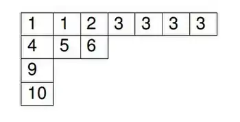 A sample Young tableau. The number inside the boxes represents the state of the particles