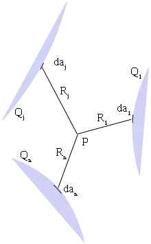 where Rji = |ri - rj|, i.e. the distance from the area-element daj to a particular point ri on conductor i. σj is not, in general, uniformly distributed across the surface. Let us introduce the factor fj that describes how the actual charge density differs from the average and itself on a position on the surface of the j-th conductor: