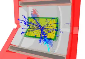 The calorimeters surround the vertex and tracking system and aim to measure the energy of particles via absorption. The electromagnetic calorimeter (ECAL) consists of ~40 layers of silicon/tungsten in a sandwich structure; the hadronic calorimeter (HCAL) has 60 steel absorber plates with scintillating material inserted in between.[19]