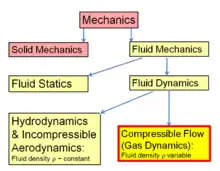 Compressible flow (or gas dynamics) is the branch of fluid mechanics that deals with flows having significant changes in fluid density. While all flows are compressible, flows are usually treated as being incompressible when the Mach number (the ratio of the speed of the flow to the speed of sound) is smaller than 0.3 (since the density change due to velocity is about 5% in that case).[1] The study of compressible flow is relevant to high-speed aircraft, jet engines, rocket motors, high-speed entry into a planetary atmosphere, gas pipelines, commercial applications such as abrasive blasting, and many other fields.