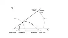 Based on the level of flow deflection (δ), oblique shocks are characterized as either strong or weak. Strong shocks are characterized by larger deflection and more entropy loss across the shock, with weak shocks as the opposite. In order to gain cursory insight into the differences in these shocks, a shock polar diagram can be used. With the static temperature after the shock, T*, known the speed of sound after the shock is defined as,