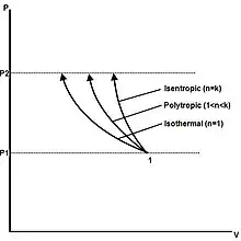in which p is pressure, V is volume, n takes different values for different compression processes (see below), and 1 & 2 refer to initial and final states.