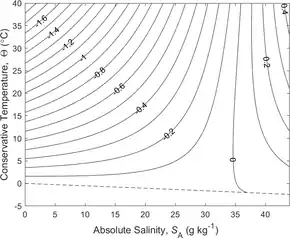 Conservative temperature is a thermodynamic property of seawater. It is derived from the potential enthalpy and is recommended under the TEOS-10 standard (Thermodynamic Equation of Seawater - 2010) as a replacement for potential temperature as it more accurately represents the heat content in the ocean.[1][2]