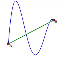 In a two- and three-dimensional space, there is an ambiguity in taking an integral between two points as there are infinitely many paths between the two points—apart from the straight line formed between the two points, one could choose a curved path of greater length as shown in the figure. Therefore, in general, the value of the integral depends on the path taken. However, in the special case of a conservative vector field, the value of the integral is independent of the path taken, which can be thought of as a large-scale cancellation of all elements that do not have a component along the straight line between the two points. To visualize this, imagine two people climbing a cliff; one decides to scale the cliff by going vertically up it, and the second decides to walk along a winding path that is longer in length than the height of the cliff, but at only a small angle to the horizontal. Although the two hikers have taken different routes to get up to the top of the cliff, at the top, they will have both gained the same amount of gravitational potential energy. This is because a gravitational field is conservative.