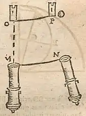 Italian scientist Giovanni Battista Riccioli and his assistant Francesco Maria Grimaldi described the effect in connection with artillery in the 1651 Almagestum Novum, writing that rotation of the Earth should cause a cannonball fired to the north to deflect to the east.[2] In 1674, Claude François Milliet Dechales described in his Cursus seu Mundus Mathematicus how the rotation of the Earth should cause a deflection in the trajectories of both falling bodies and projectiles aimed toward one of the planet's poles. Riccioli, Grimaldi, and Dechales all described the effect as part of an argument against the heliocentric system of Copernicus. In other words, they argued that the Earth's rotation should create the effect, and so failure to detect the effect was evidence for an immobile Earth.[3] The Coriolis acceleration equation was derived by Euler in 1749,[4][5] and the effect was described in the tidal equations of Pierre-Simon Laplace in 1778.[6]