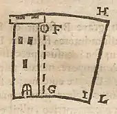 Image from Cursus seu Mundus Mathematicus (1674) of C.F.M. Dechales, showing how a ball should fall from a tower on a rotating Earth. The ball is released from F. The top of the tower moves faster than its base, so while the ball falls, the base of the tower moves to I, but the ball, which has the eastward speed of the tower's top, outruns the tower's base and lands further to the east at L.